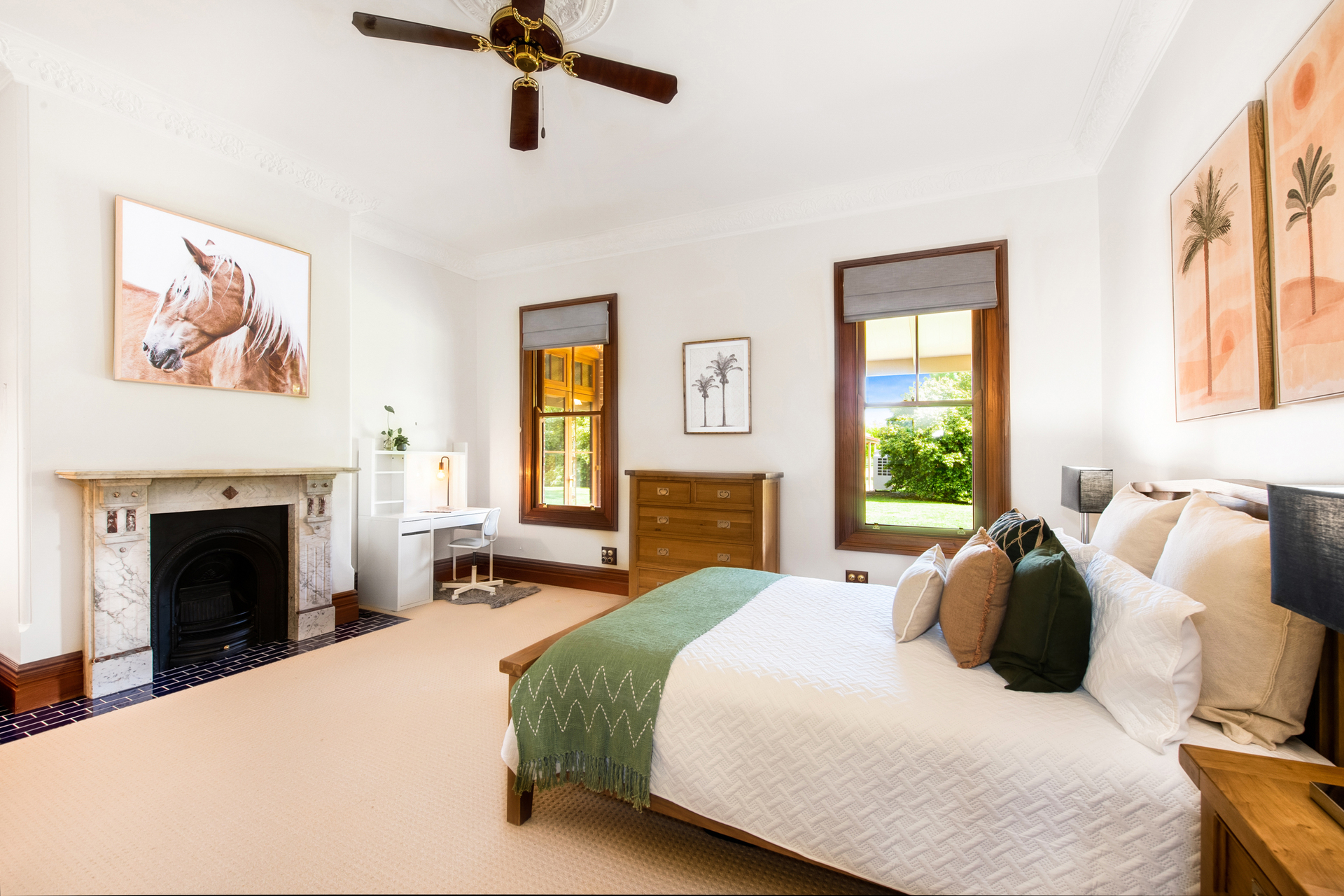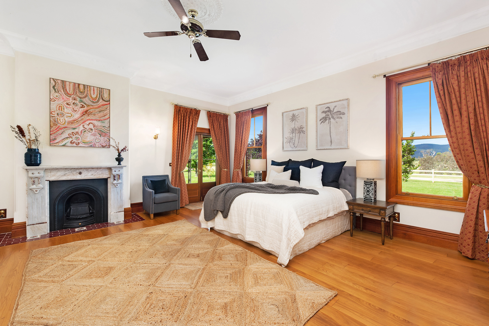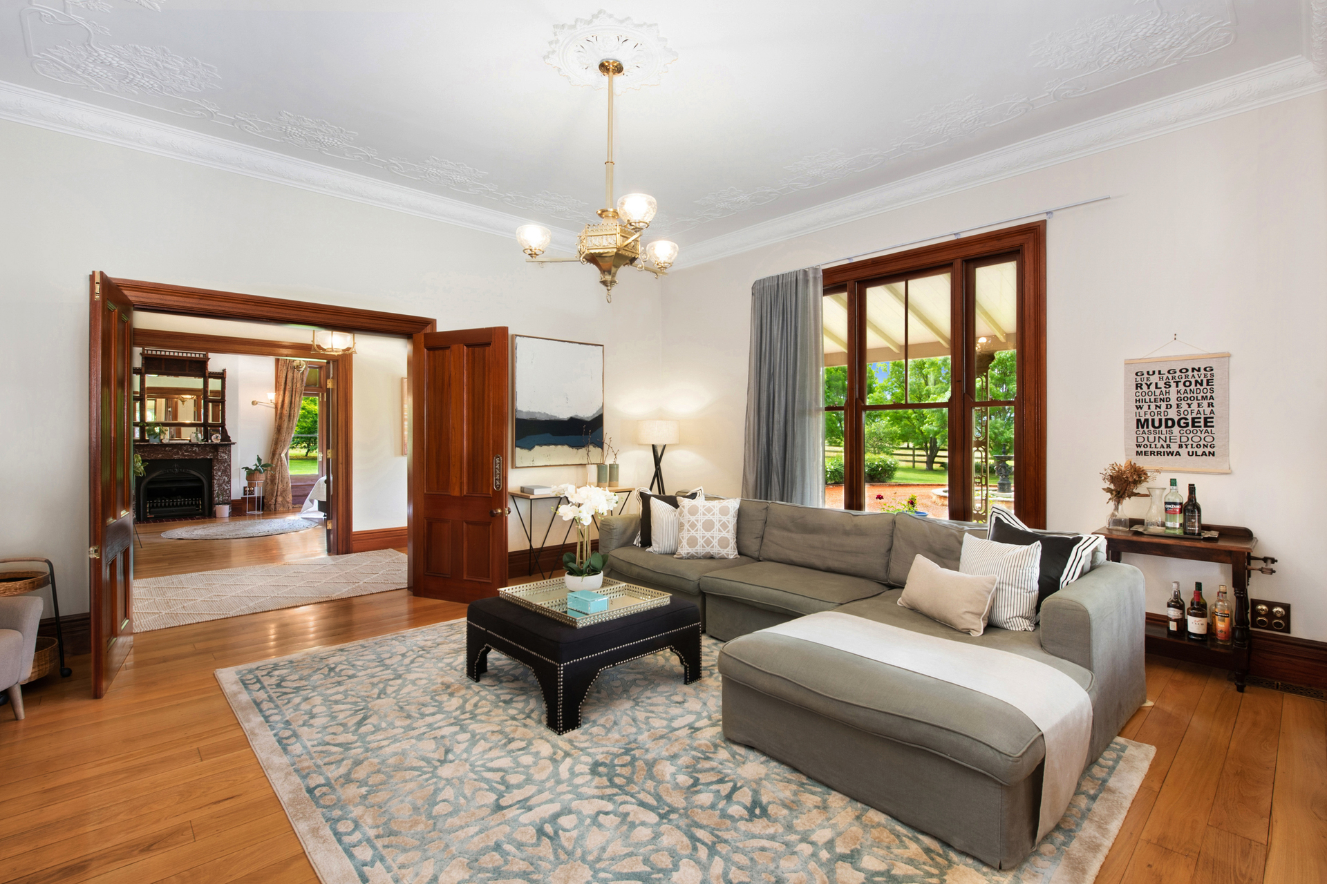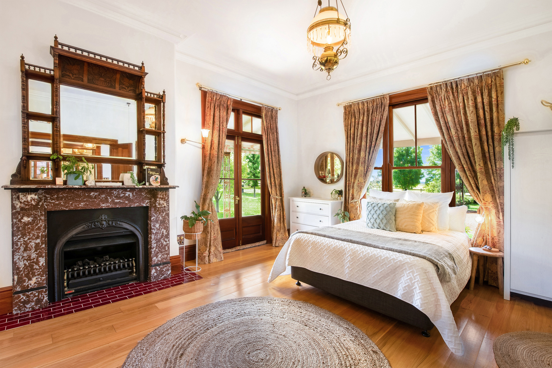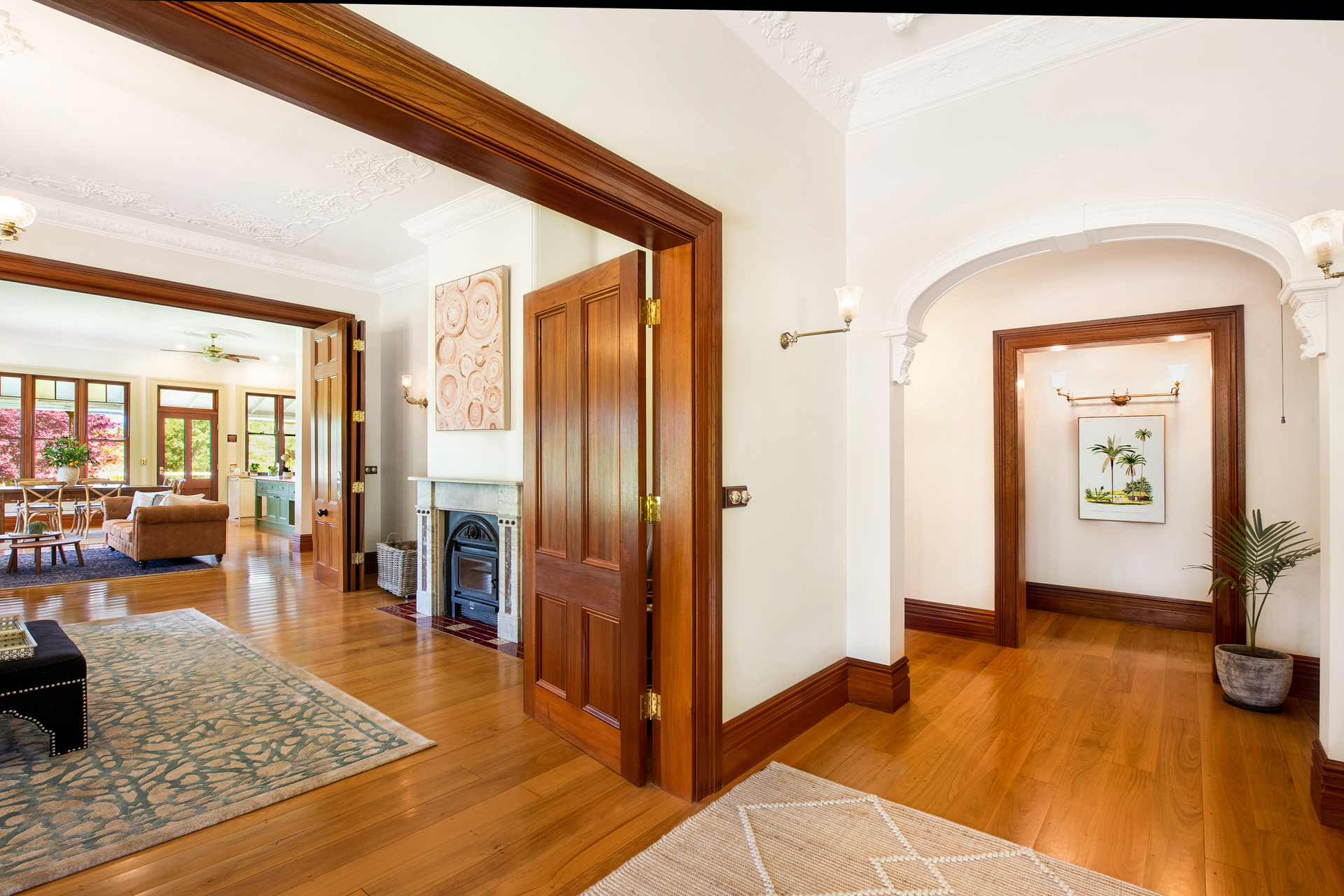 Representing the best of Victorian Regency style but thoughtfully incorporating the practicalities and luxuries of the modern day, the elegant home was constructed in 2006 with faithful authenticity to the aesthetics of the day. There are working fireplaces, along with with ducted air-conditioning, under-floor heating in the bathrooms. Polished tallowwood floors and Australian red cedar create a warm, comforting ambience, accentuated by polished brass fixtures.